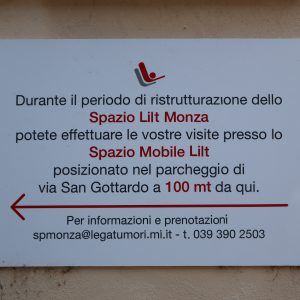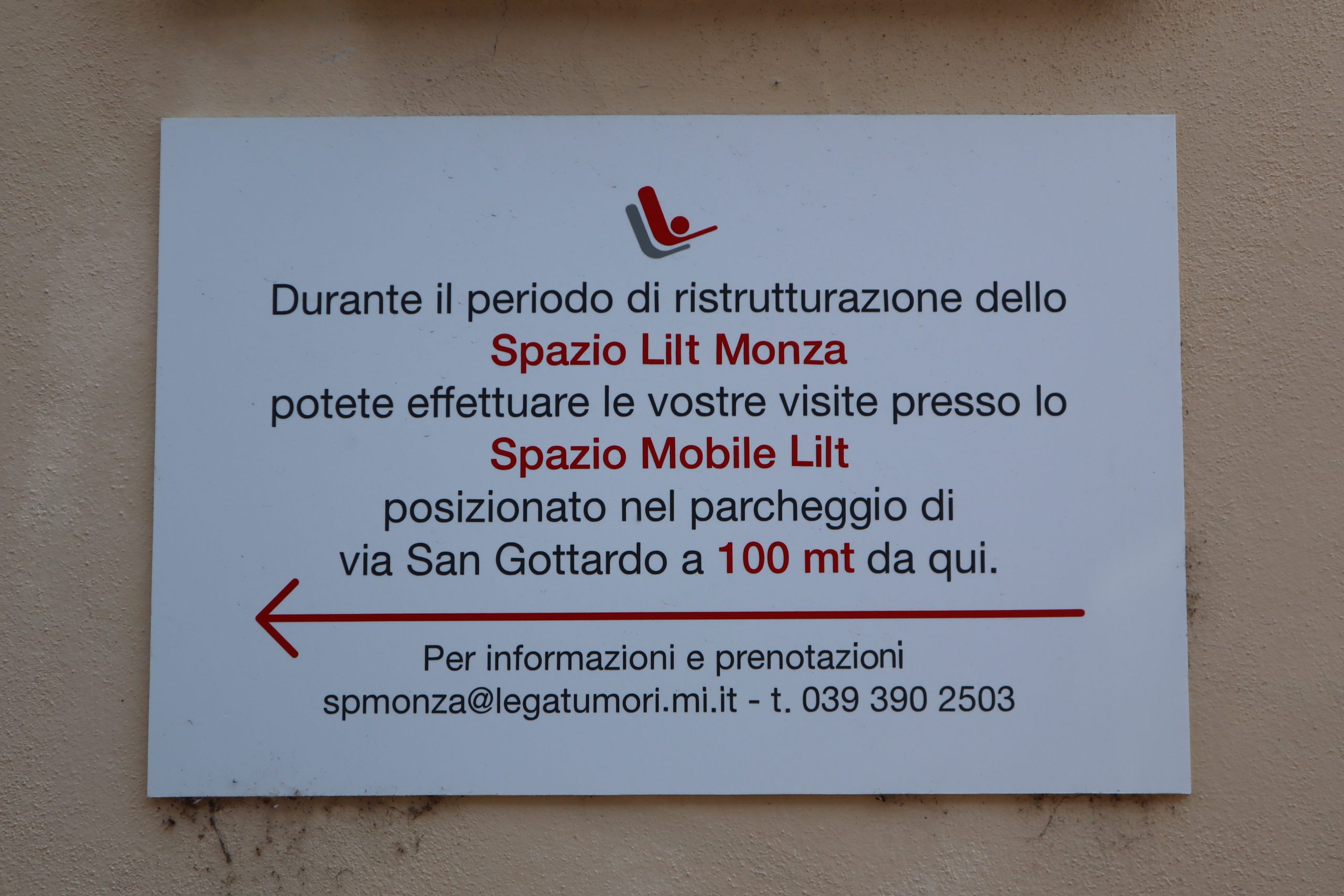 Dal 1972 LILT è presente a Monza, prima in Via Lecco e poi nello Spazio LILT di Via San Gottardo. Un ambulatorio facilmente accessibile alle persone grazie alla sua posizione, in pieno centro storico e vicino alla stazione. La palazzina in cui è ospitato dal 2003 è frutto di un lascito testamentario. Un bellissimo gesto di solidarietà da parte di una persona che credeva fortemente nella nostra causa e decise di farcene dono a sostegno della lotta contro i tumori.