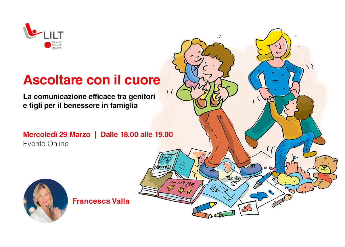 Insieme a Francesca Valla, counselor, insegnante, tata tv, scrittrice, ma soprattutto mamma, affronteremo il tema “Ascoltare con il cuore. La comunicazione efficace tra genitori e figli per il benessere in famiglia”.