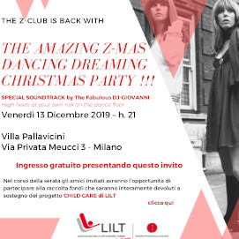 Venerdì 13 Dicembre dalle ore 21 ti aspettiamo presso Villa Pallavicini (in Via Privata Meucci 3) a Milano con “The Amazing Z-mas Danding Dreaming Christmas Party” organizzato da The Z-Club a sostegno del progetto LILT “Child Care” per i bambini malati ospitati presso il Reparto di Pediatria Oncologica dell’Istituto dei Tumori di Milano.