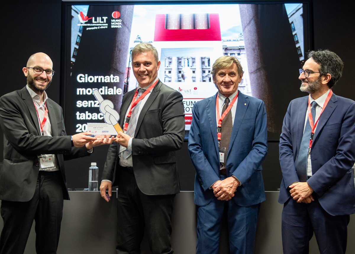 Una mattinata ricca di emozioni, quella di venerdì 27 maggio. Come ogni anno, in vista della Giornata mondiale senza tabacco, LILT Milano Monza Brianza ha messo in campo numerose azioni per rinnovare il suo impegno nella lotta al tabagismo. Un impegno che da due anni a questa parte viene condiviso con serietà e premura anche dalle aziende. Nel 2022 una in particolare ha dimostrato grande interesse nella battaglia per un domani smoke free: Perfetti Van Melle. Grazie al suo progetto FreshAir “Respira salute, non fumo” si è infatti aggiudicata il premio LILT Azienda senza fumo 2022. A ritirare l’iconica sigaretta annodata Samuele Marri, Direttore delle Risorse Umane dell’azienda. Al suo fianco erano presenti anche Marco Alloisio, Presidente LILT Milano Monza Brianza e Lamberto Bertolè, Assessore al Welfare e Salute del Comune di Milano.