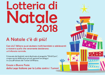 Puntualissimo, ritorna ogni anno l’appuntamento con la Lotteria di Natale. Anche quest’anno l’iniziativa è dedicata ai bambini malati, ai quali noi di LILT dedichiamo ogni giorno tanti servizi per rendere più sereno l’iter terapeutico e il ritorno a casa dopo le dimissioni. Leggi qui il nostro progetto Child Care e scopri quello che facciamo per i bambini.