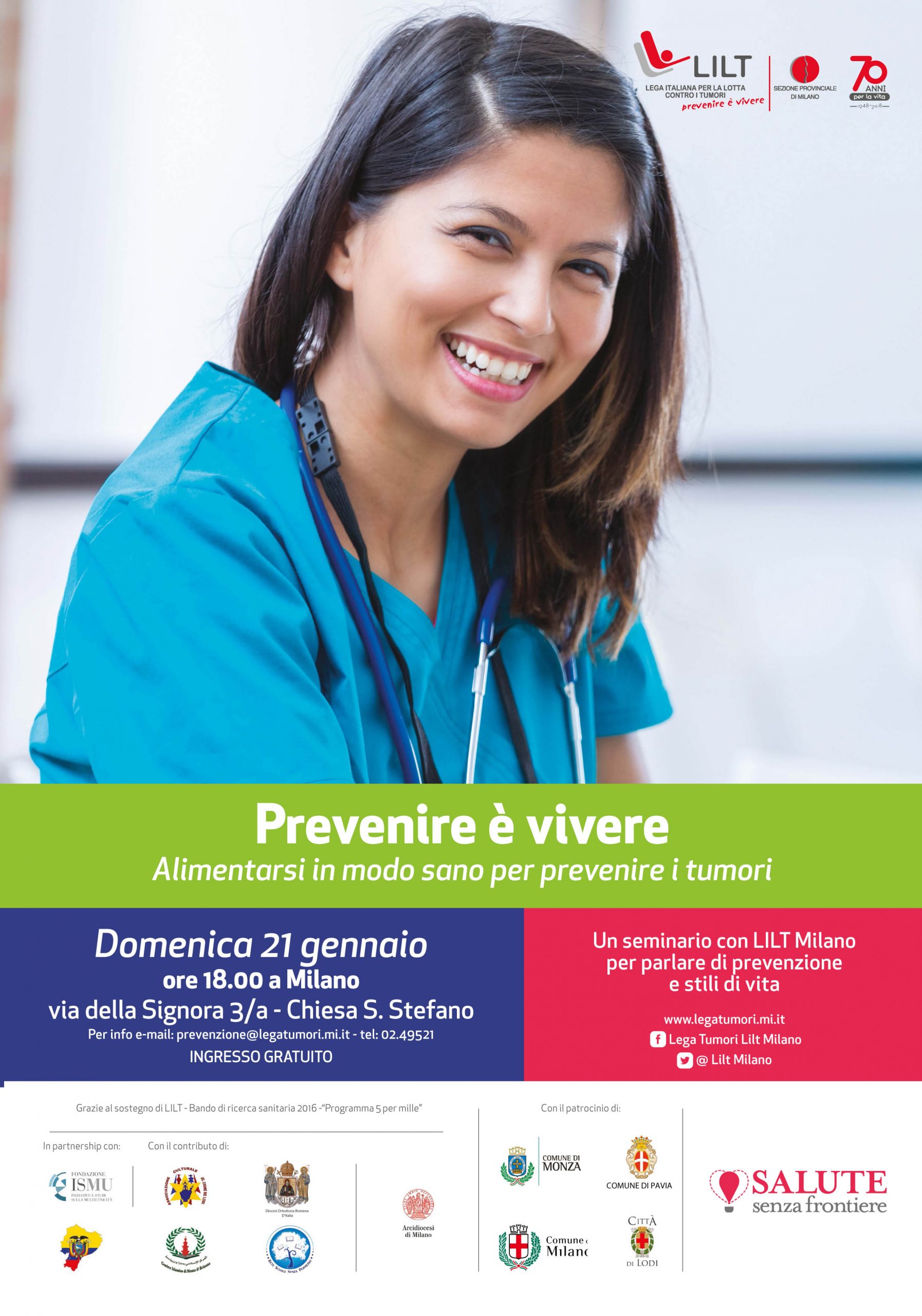Domenica 21 gennaio prende il via il progetto “La Salute senza Frontiere” che per tutti i fine settimana dal 21 gennaio a 31 maggio, e poi da settembre a dicembre 2018, sensibilizzerà le maggiori comunità migranti presenti sui territori di Milano, Monza, Lodi e Pavia.