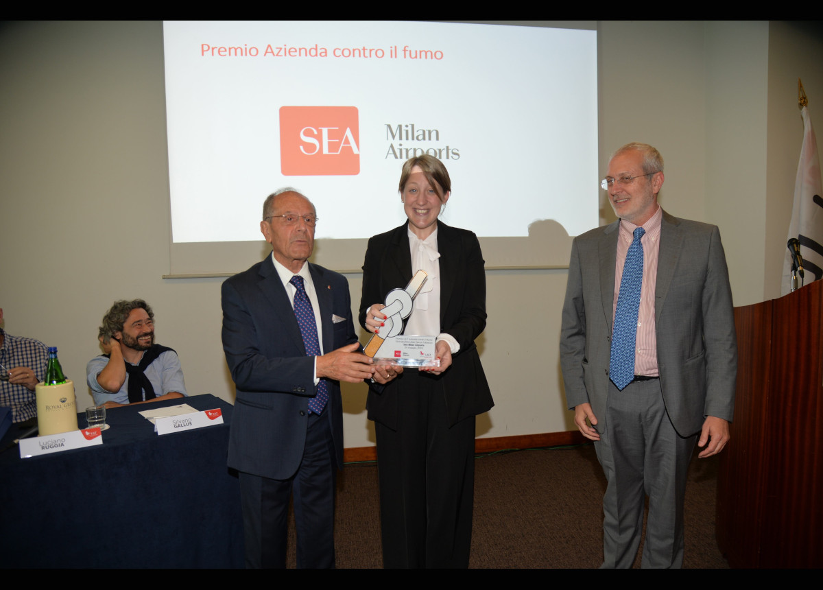 Da diversi anni abbiamo 𝗶𝘀𝘁𝗶𝘁𝘂𝗶𝘁𝗼 𝗶𝗹 𝗽𝗿𝗲𝗺𝗶𝗼 “𝗔𝘇𝗶𝗲𝗻𝗱𝗮 𝗰𝗼𝗻𝘁𝗿𝗼 𝗶𝗹 𝗳𝘂𝗺𝗼” dedicato alle compagnie che si distinguono per politiche anti-fumo nei luoghi di lavoro. Verso la fine dell’evento, il presidente Marco Alloisio e il Presidente di LILT nazionale Francesco Schittulli, hanno consegnato il premio a SEA Milan Airports per avere promosso iniziative di sensibilizzazione contro il fumo e percorsi di disassuefazione per i dipendenti.