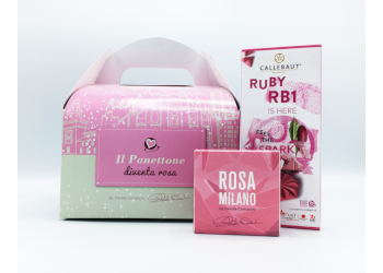 Una golosa copertura di Ruby Chocolate su un panettone di alta pasticceria. E’ il panettone rosa, l’ultima limited edition delle tre creazioni dedicate a LILT e della campagna charity Milano diventa rosa dal Chocolate Designer Davide Comaschi, direttore della Chocolate Academy Milano.
