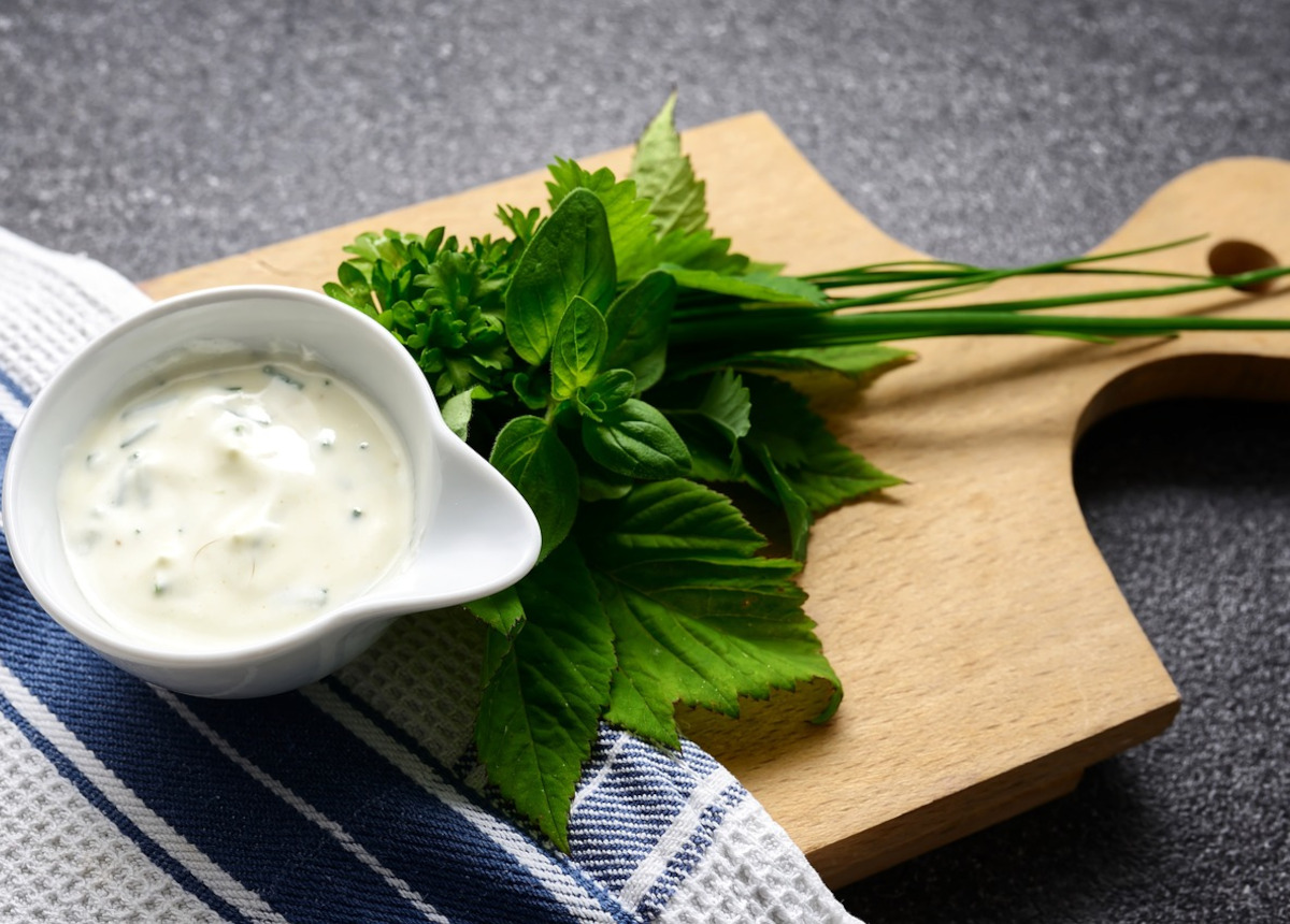 - Tritare prezzemolo e scalogno e unire il succo di limone, pepe e olio EVO e mettere il tutto in una ciotola. Aggiungere lo yogurt greco mescolando man mano, in modo da amalgamare bene e ottenere una crema. Coprire la ciotola e lasciare riposare per 30 minuti in frigorifero.