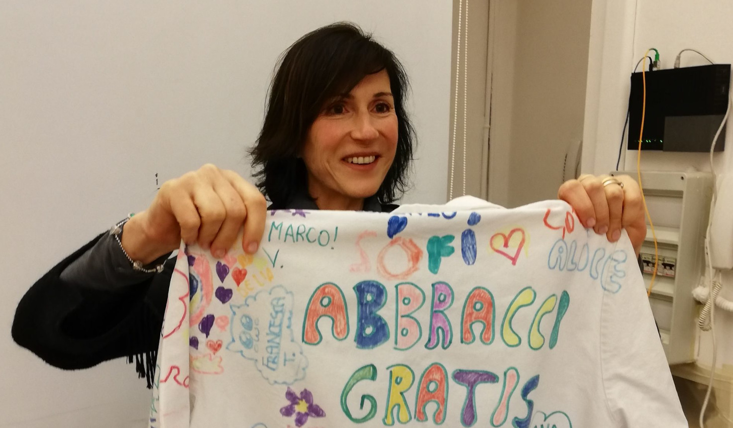 Con i colori dei bambini malati sul camice